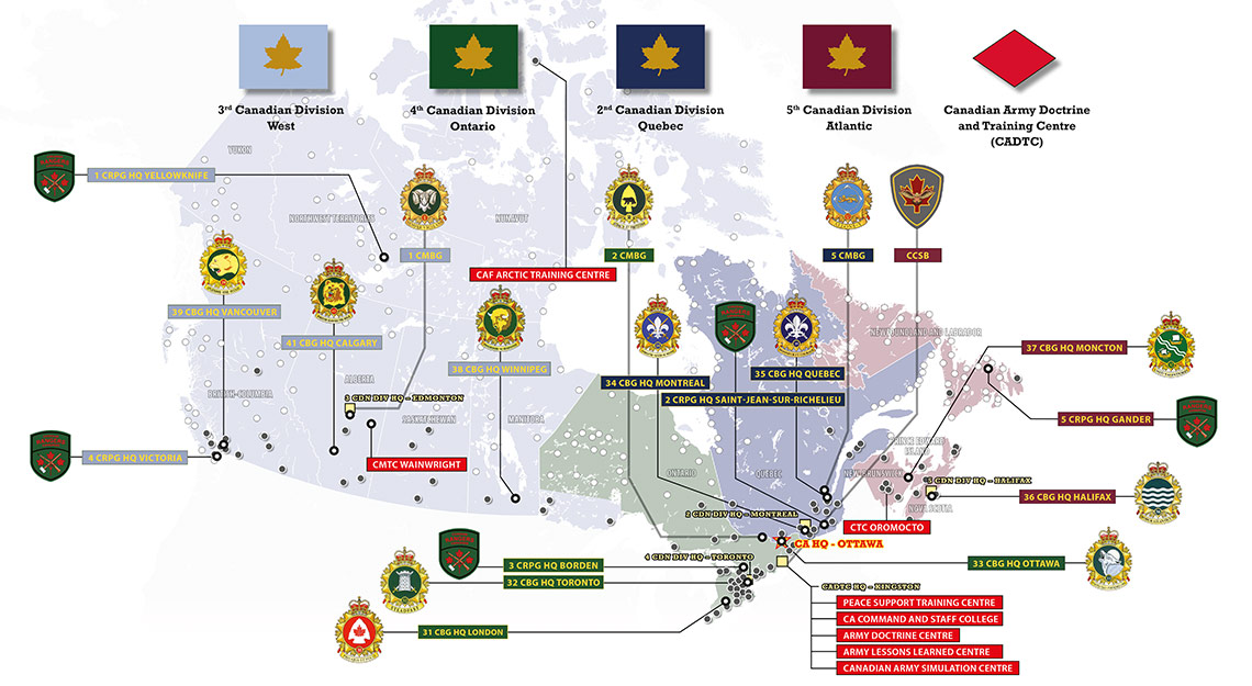 Note: 1st Canadian Division Headquarters is part of Canadian Joint Operations Command (CJOC).
