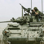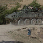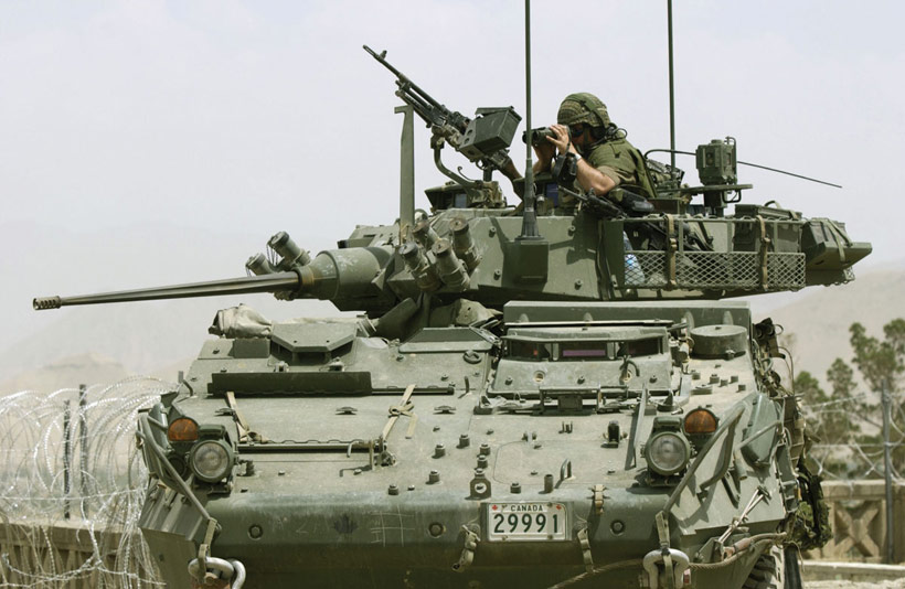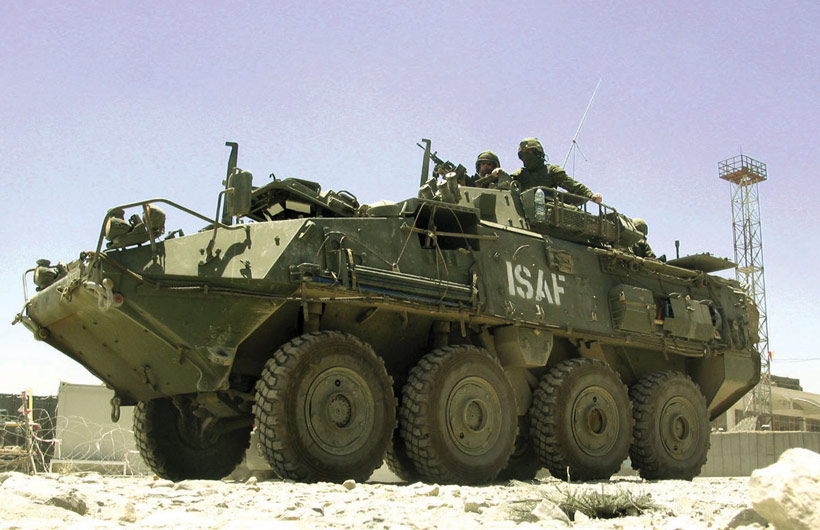 The Light Armoured Vehicle (LAV) III is a relatively-well protected, all-weather vehicle that can be used on most types of terrain. The vehicle can ford hard-bottomed bodies of water to a depth of 1.5 metres. Capable of speeds of up to 100 kilometres per hour on roads, the LAV III gives the commander more options in both combat and non-combat situations.
