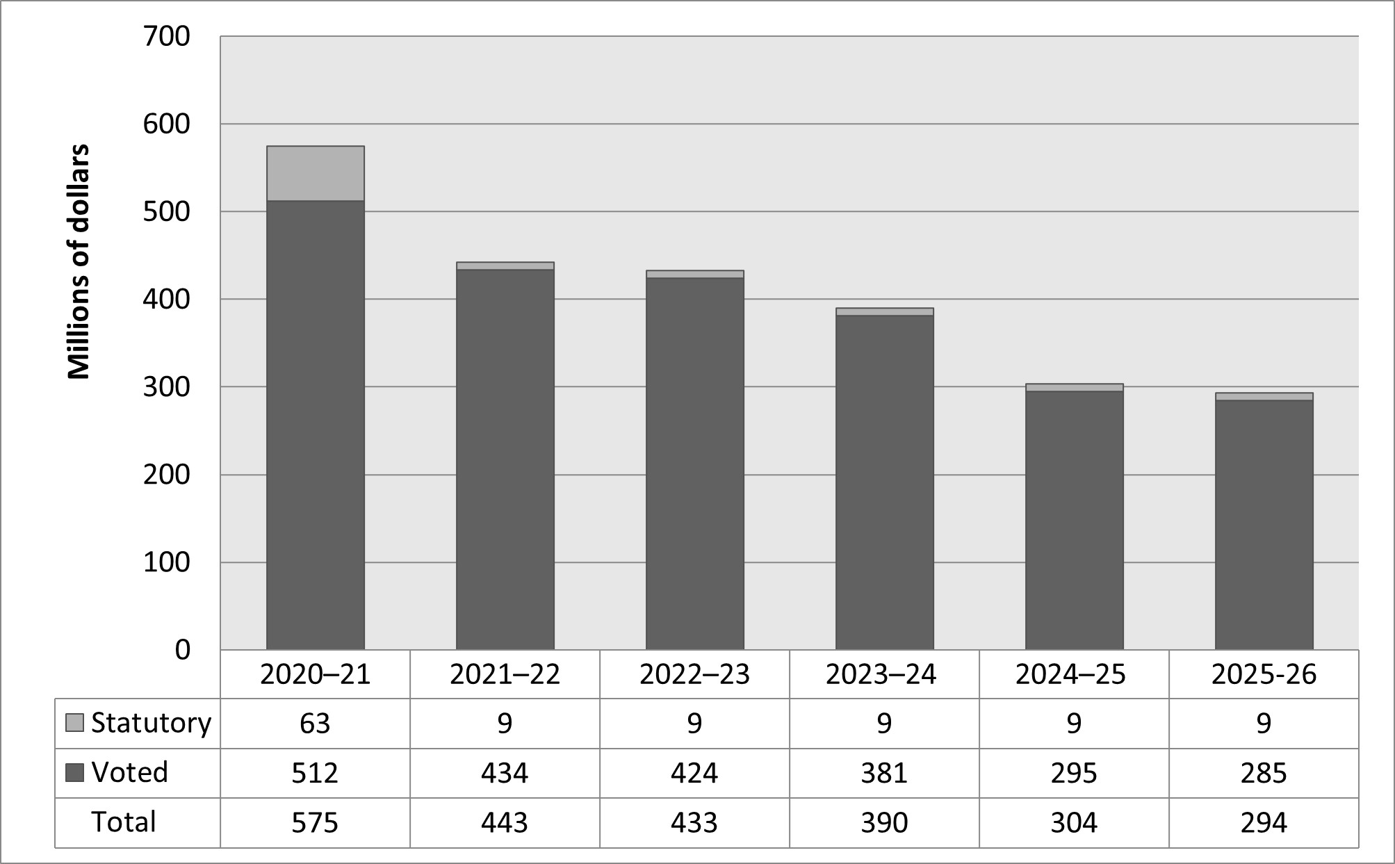 Expenditures that Parliament approves annually through an appropriation act. The vote wording becomes the governing conditions under which these expenditures may be made.