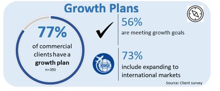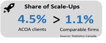 | ACOA provides commercial and non-commercial funding ($496M to 2856 projects over 5 years) as well as non-financial supports for growth focused on productivity improvements, skills and labour, and market expansion. ACOA clients report higher growth and productivity compared to non-assisted clients (Stats Canada). Commercial clients reported plans to grow (77%); increased growth (82%); improved sales in existing markets (74%); development of new markets (71%); improved international competitiveness (56%). Non-commercial clients indicated their projects helped SMEs to grow by developing new or existing markets (74%), enhancing marketing (72%), improving operational practices or production processes (57%), and helping with export plans (42%). ACOA contributes to a strengthened ecosystem for growth. | ||