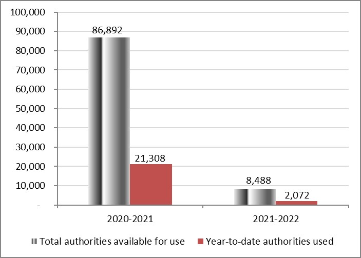 | Authorities | Total available for use for the year ending March 31, 2022* |