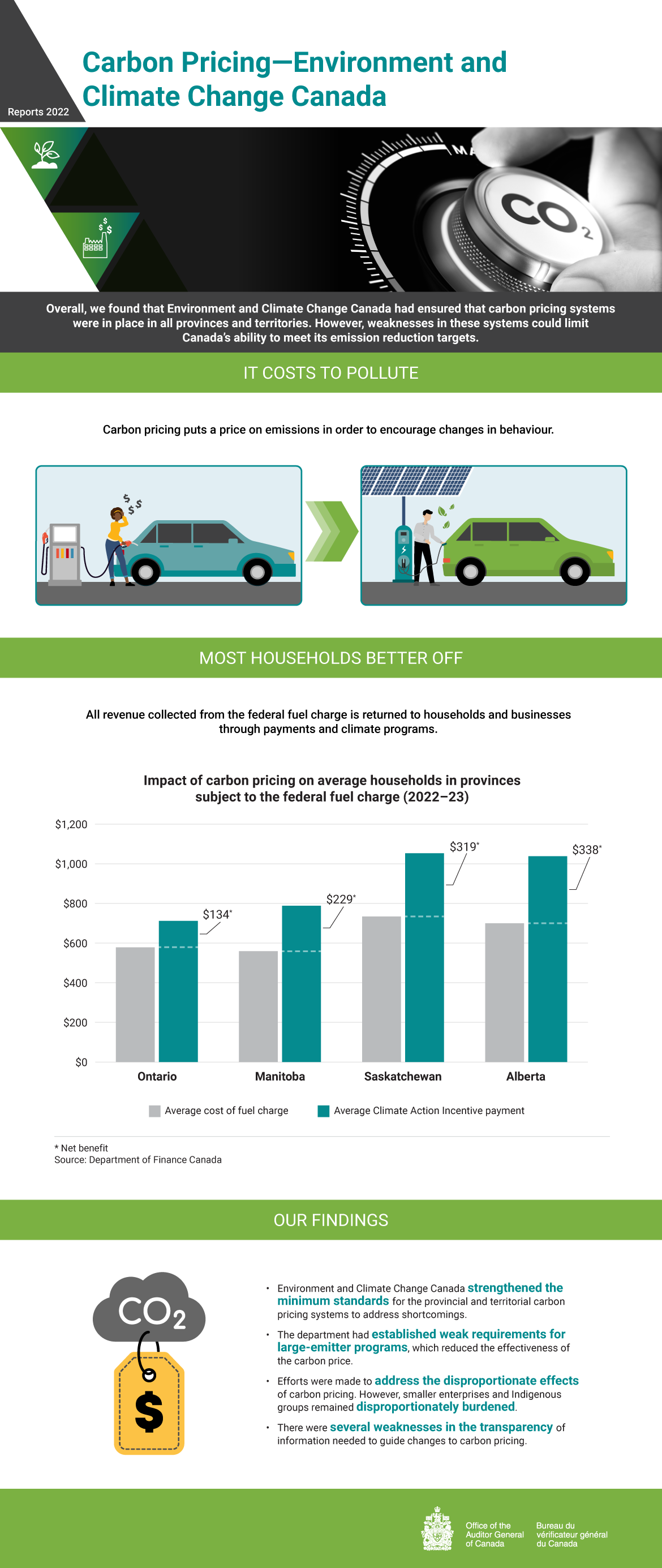 This infographic presents findings from the 2022 audit report on carbon pricing.