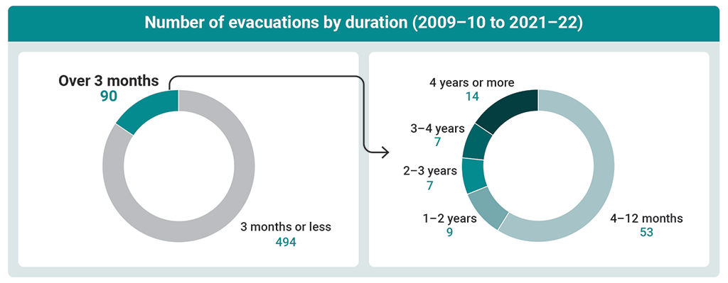 Between the 2009–10 and 2021–22 fiscal years, 90 evacuations of First Nations communities lasted longer than 3 months