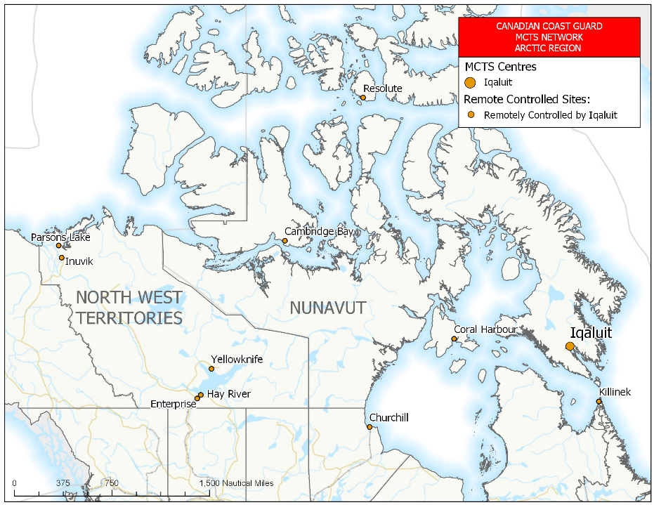The Iqaluit MCTS centre performs Alert and Warning Network (AWN) desk duties and provides Navigational Warning services. The centre operates seasonally.