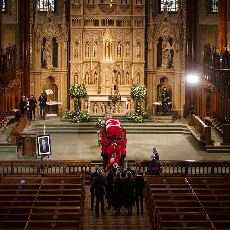 The funeral ceremony took place at 11 am on Saturday, March 23, 2024, at the Notre-Dame Basilica of Montréal, in Montréal. Prior to the ceremony, a funeral cortege, including a Royal Canadian Mounted Police (RCMP) mounted escort, a Canadian Armed Forces escort and guard of honour, the Royal Canadian Air Force Band, and RCMP pallbearers, made its way to the Notre-Dame Basilica of Montréal.