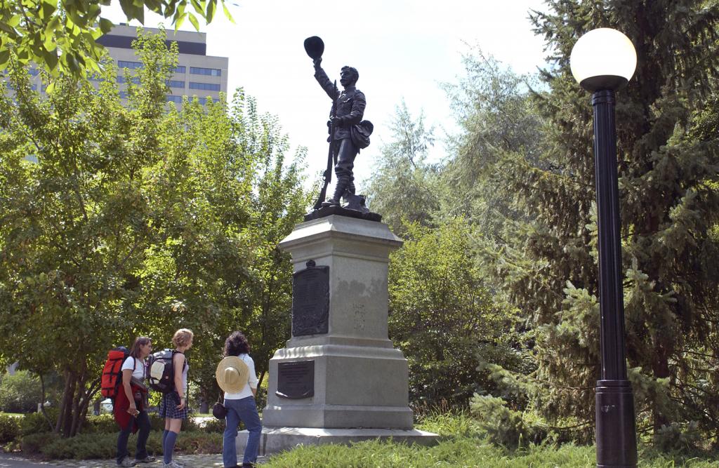 The South African War Memorial is set in Confederation Park in downtown Ottawa. Thirty thousand school children donated pennies to pay for this monument to Canadian volunteers who died in the South African War (Boer War) of 1899–1902 .