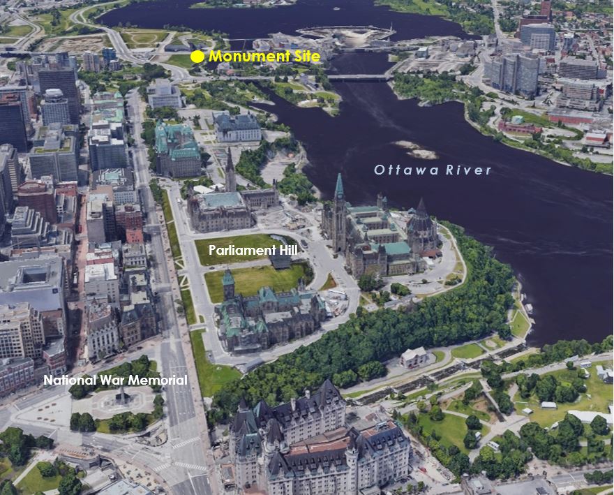 The Monument will be prominently located at LeBreton Flats across from the Canadian War Museum, on the east side of Booth Street, north of the National Holocaust Monument. With views of Parliament and other key federal institutions, the site will provide easy access to and high visibility to the Monument for both vehicle and pedestrian traffic.