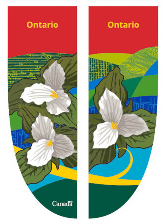 Sequences of colourful, provincial and territorial banners offer a novel portrayal of the provinces and territories that make up our Confederation. These banners incorporate representative details and imagery of each province and territory, along with recognition of Canada’s Capital Region. The display of these banners changes yearly, and features themes such as floral and animal emblems or provincial and territorial landscapes.