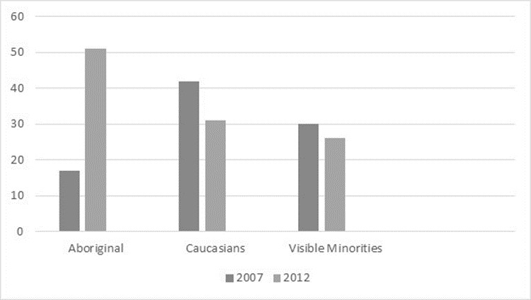 Maranda (2009) reveals a substantial improvement in gallery representation (from 16% to 47% in 2012) and level of education among Indigenous artists, which may be connected to growing average incomes and, according to researchers, may also be evidence of a trend.