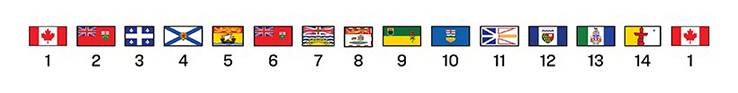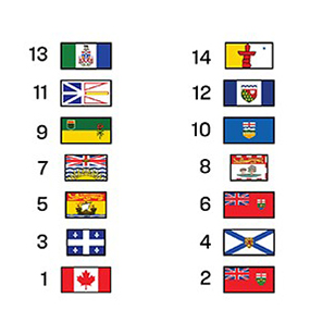 - the flags of the provinces of Canada, in the order in which they joined Confederation