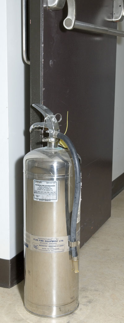 Consult your local fire authority or advisor to determine which type of extinguisher is most appropriate for each area of your institution. Portable extinguishers are generally installed near exits. They should be mounted on approved brackets, inspected visually monthly, and maintained annually.