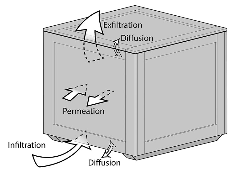 Michalski, S. “Leakage Prediction for Buildings, Cases, Bags and Bottles.” Studies in Conservation 39,3 (1994), pp. 169–186.