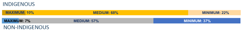 The initial offender security level distribution for Indigneous offenders was 10% for Maximum security, 88% for Medium securirty, and 22% for Minimum security.