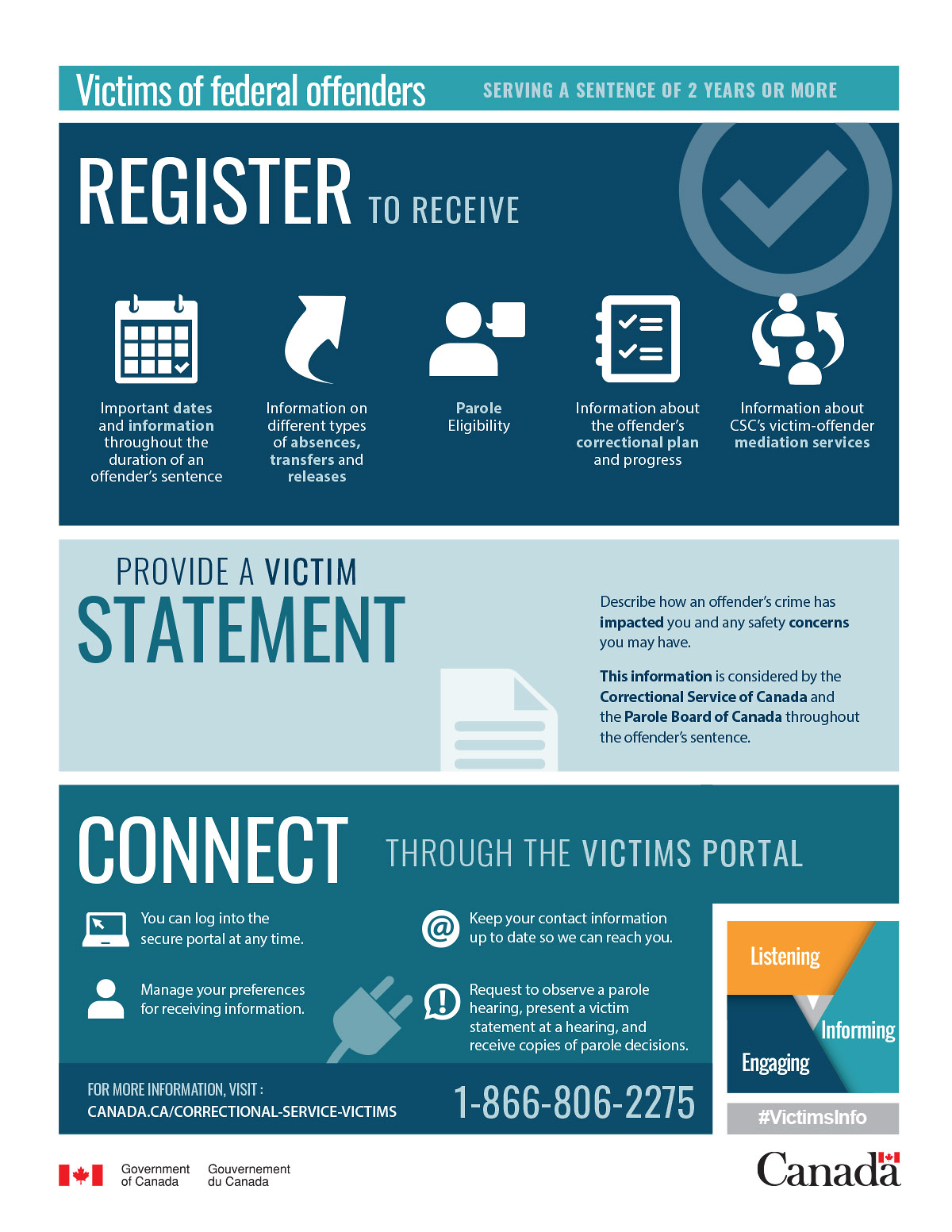For more information, visit: www.canada.ca/correctional-service-victims.