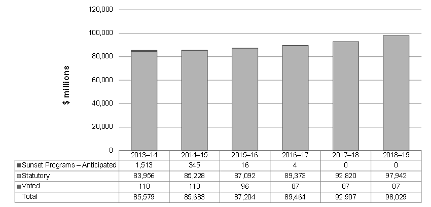 statutory expenditures: Expenditures that Parliament has approved through legislation other than appropriation acts. The legislation sets out the purpose of the expenditures and the terms and conditions under which they may be made.