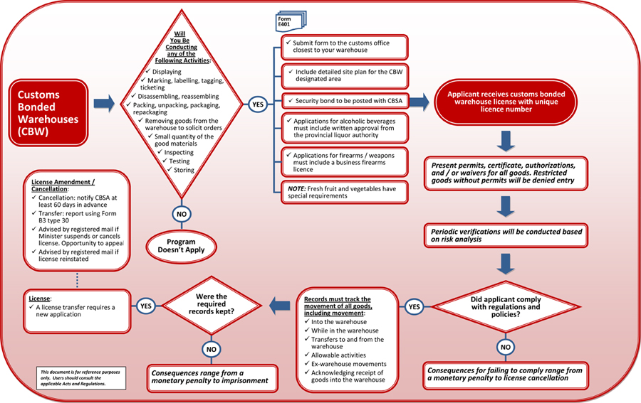 For more information on the Customs Bonded Warehouse Program, please visit the CBSA Web site or contact your local CBSA office.