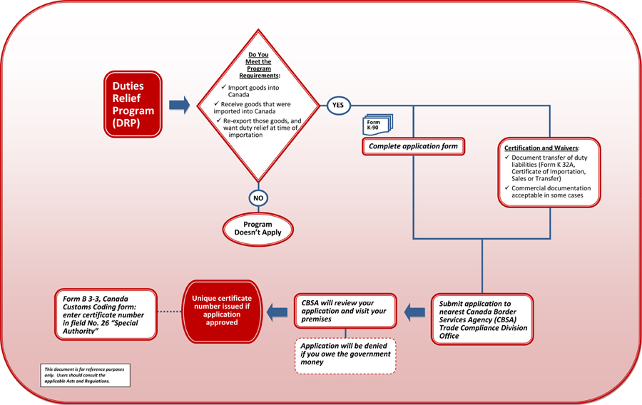 For more information on the Duties Relief Program, please visit the CBSA Web site or contact your local CBSA office.