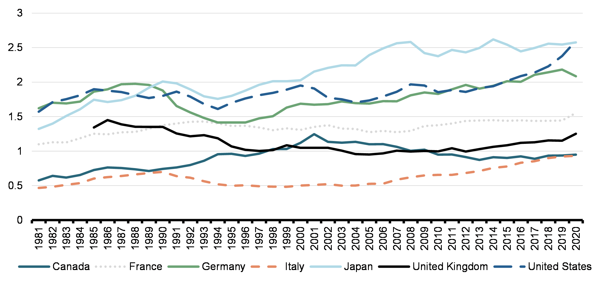 Canada is one of the only countries in the Organisation for Economic Co-operation and Development that has seen a decrease over the past two decades in the overall level of investment in R&D as a share of GDP. The number of firms conducting R&D in Canada has steadily declined across almost all sectors of the economy.