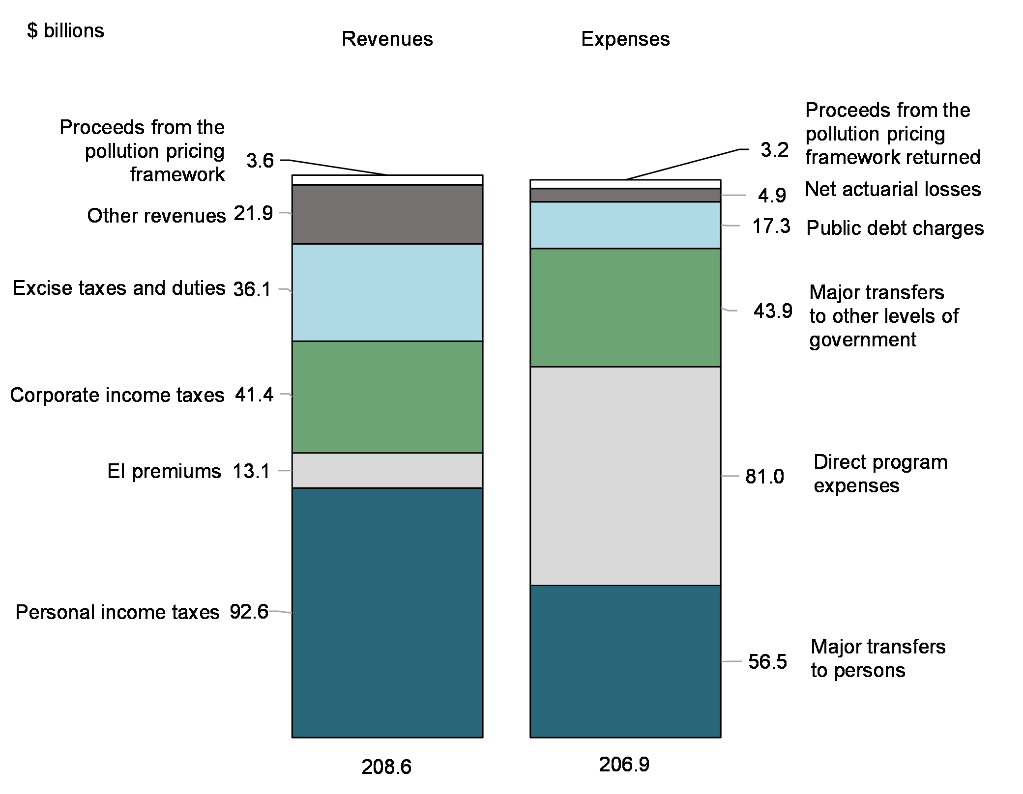 - Proceeds from the pollution pricing framework were up $0.9 billion, or 36.2 per cent, reflecting higher carbon pollution pricing in 2022.