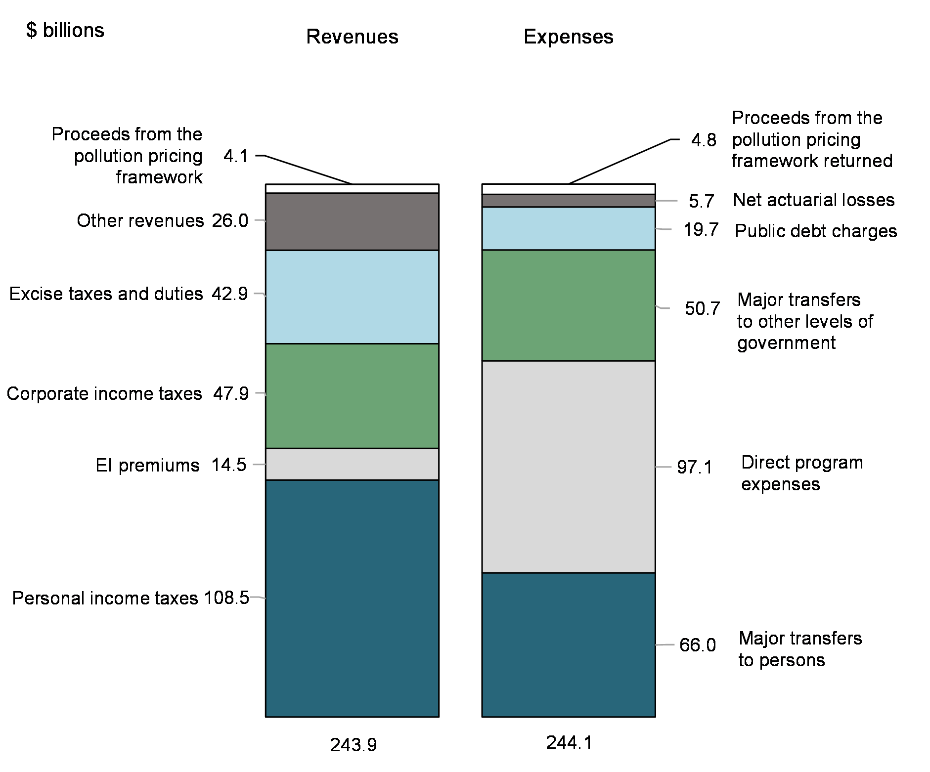 - Proceeds from the pollution pricing framework were up $0.1 billion, or 31.7 per cent, reflecting higher carbon pollution pricing in 2022.