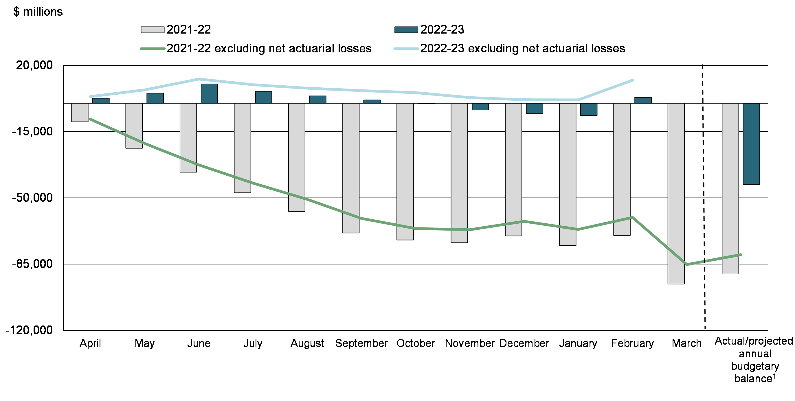 Monthly Budgetary Balance and Budgetary Balance Excluding Net Actuarial Losses