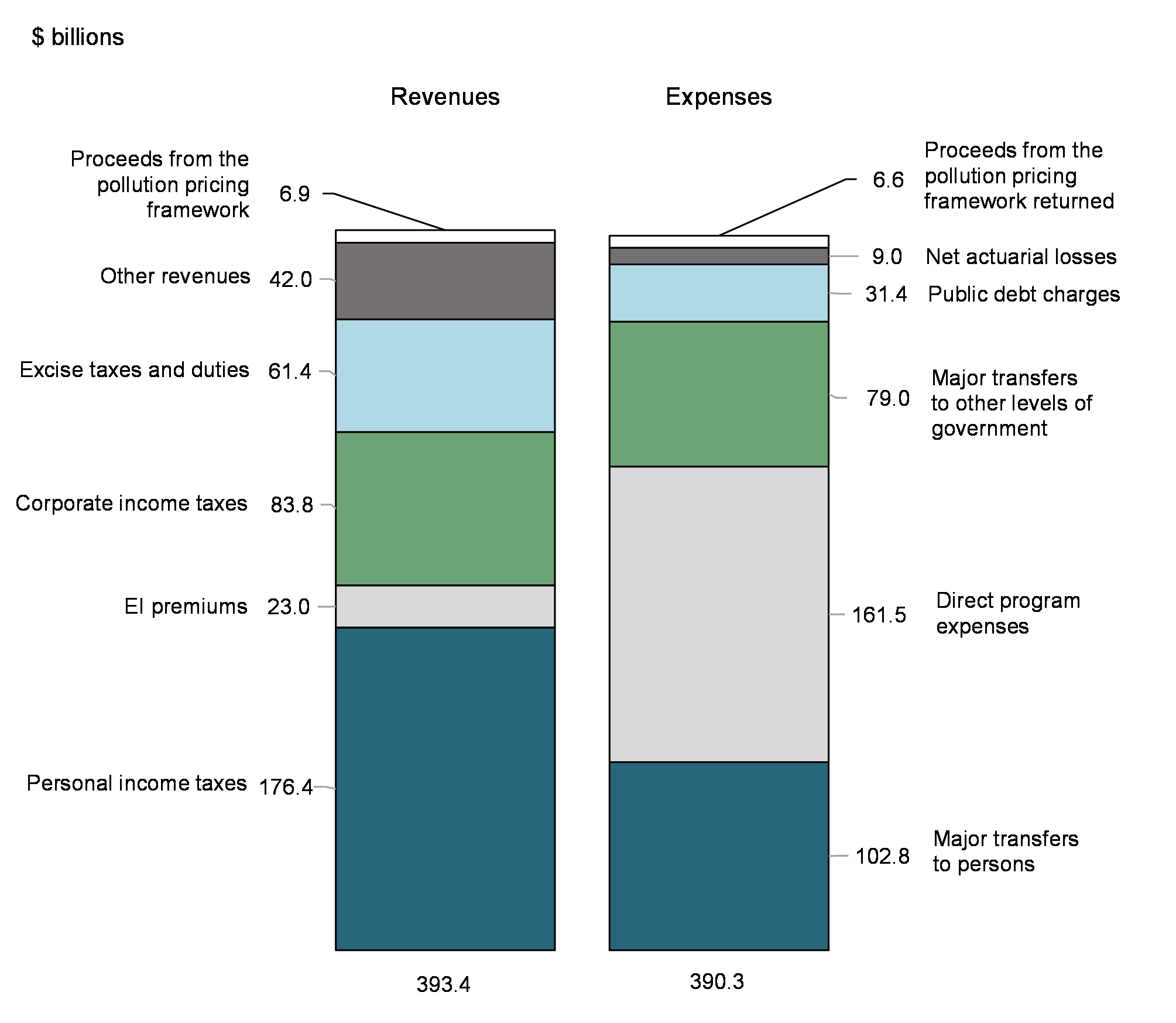 - Proceeds from the pollution pricing framework were up $1.8 billion, or 35.5 per cent, reflecting higher carbon pollution pricing in 2022 and 2023.