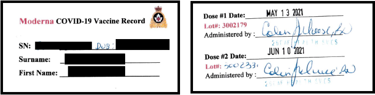 Canadian Armed Forces (CAF) members who receive a COVID-19 vaccination from the CAF are provided with proof of vaccination. Early in the pandemic, these were in the form of an entry in a vaccination booklet, a sheet of paper or card, but now it is more likely a digital “passport” with QR-Code. Vaccination details are also logged into the Canadian Forces Health Information System, the CAF electronic health information management system where members’ health records are stored.