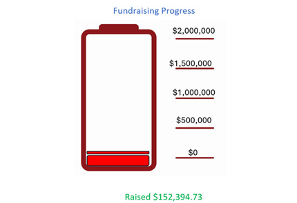 The speedometer demonstrates the Department’s financial goal of $2,000,000 and our progress of $152,394.73.