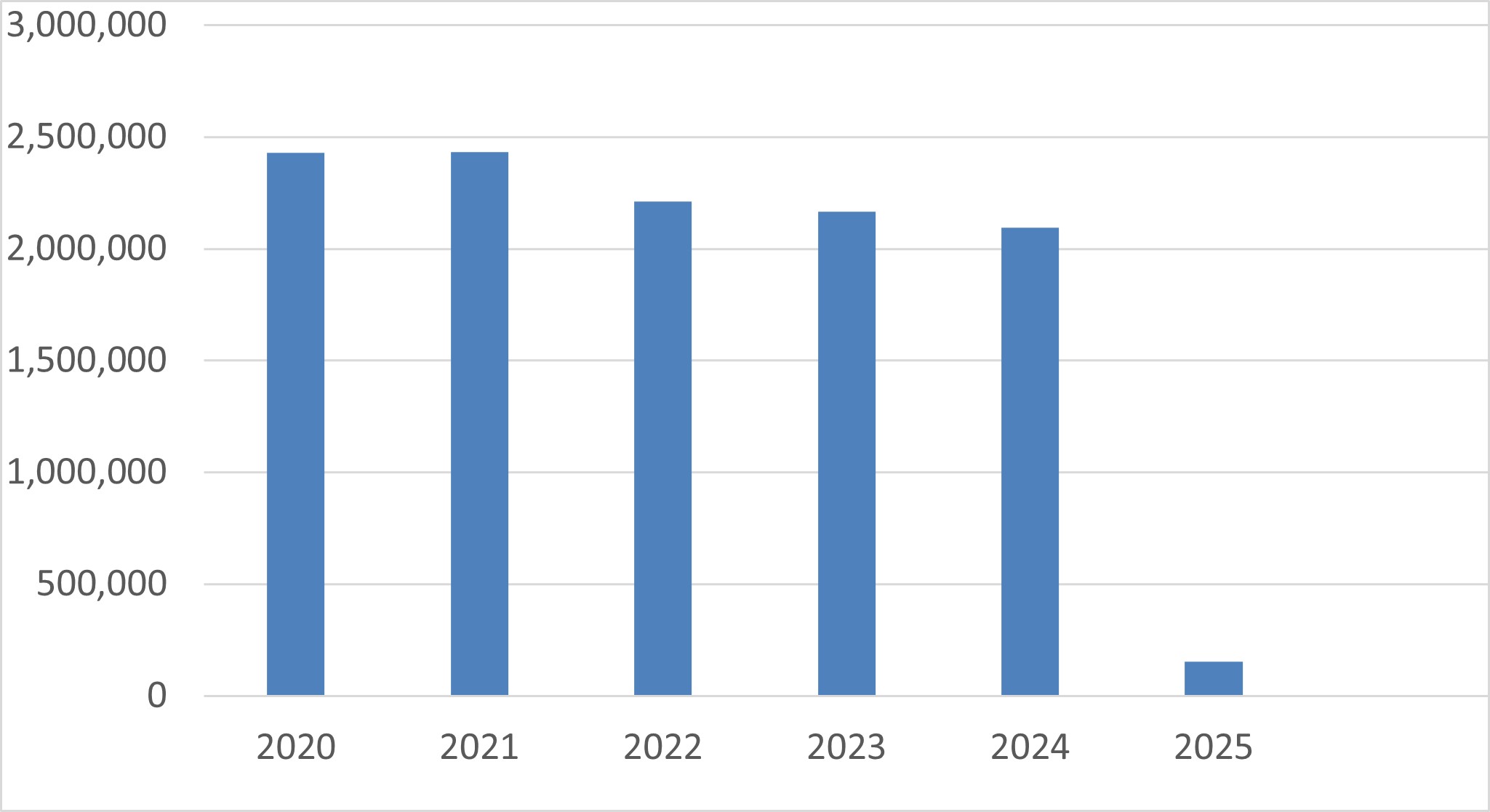 Yearly comparison reporting from 2020 to 2025