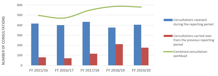 In 2019-2020, 1972 requests were received, 1013 requests were carried over from the previous reporting period. A combined workload of 2985 requests.