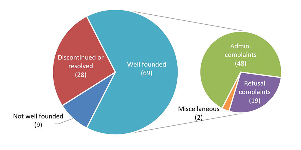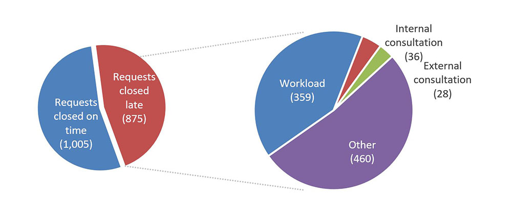 In 2016-2017, 2838 requests were received, 673 requests were carried over from the previous reporting period. A combined workload of 3511 requests.