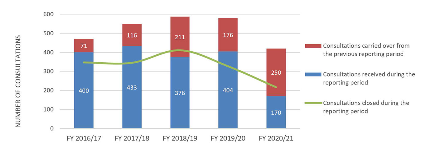 In 2020-2021, 2028 requests were received, 1271 requests were carried over from the previous reporting period. A combined workload of 3299 requests.