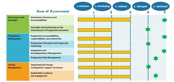 The Programme has consulted key stakeholders, organized stakeholder engagement workshops, and established mechanisms to measure and report regularly on the performance of these engagement activities. As well, the Programme has developed a stakeholder database which identifies and categorizes key stakeholders, including their roles and relationships to the Programme. Going forward, the stakeholder analysis process can be formalized to support their continued engagement, including updating any changes in stakeholders’ positions, such as their roles, interests, ability to influence, degree of support and impact. To ensure overall achievement of outcomes, the change management strategy and activities may need to consider external projects that have interdependencies with the Programme.