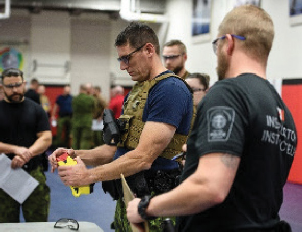 The Canadian Forces Military Police Academy runs a Conducted Energy Weapons Instructor Qualification course on December 2, 2019 at Canadian Forces Base Borden, Ontario. Photo: Cpl Caitlin Paterson.