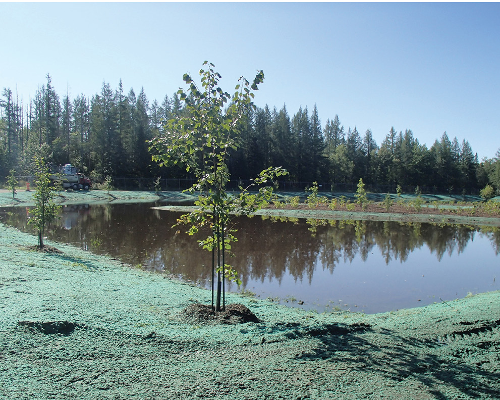The Valcartier Research Centre provides the Canadian Armed Forces with scientific and technical services. Three dumpsites operated on the site from 1960 to 1990. In 2020, Defence completed a remediation project that removed more than 25,000 m3 of waste from one of the dumpsites and converted it into a retention pond. The other dumpsites were properly shaped and covered with impermeable membranes and clean soils. In addition to reducing contamination, the project will save over 160 tonnes of GHG emissions by minimizing waste transport and due to the carbon-sink effect of the new retention pond and wetland on the site.