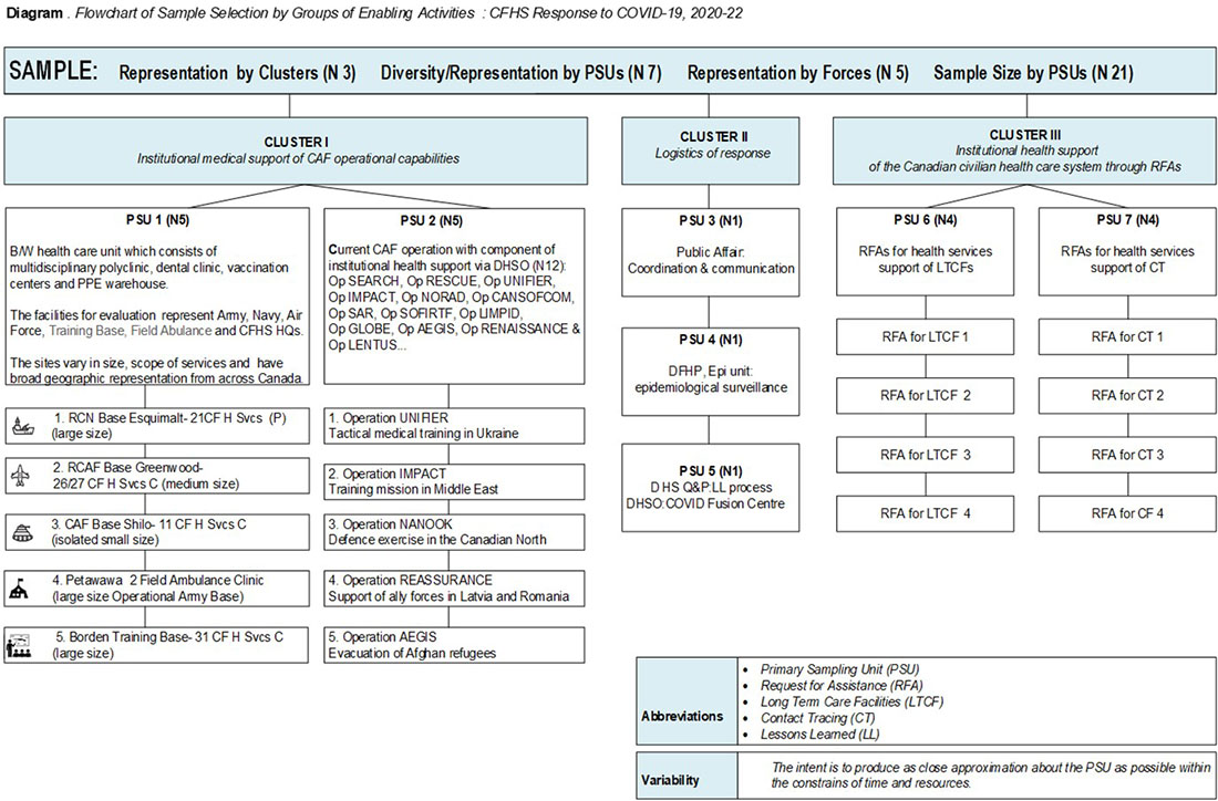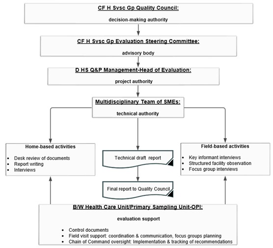 The Directorate of Health Services Quality and Performance would like to thank the Canadian Forces Health Services (CFHS) Evaluation Steering Committee for their timely input and support throughout the process. Many partners in CFHS headquarters and in the field contributed, and we would especially thank those who hosted the field visit and facilitated data gathering. We also extend our gratitude to all the Defence Team members who took the time to provide their input and share their experiences.