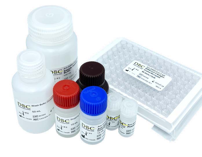 Diagnostic Biochem Canada Inc. successfully developed four Anti-SARS-Cov-2 serological tests. Two of them, the total antibody and IgG tests, were the first Canadian COVID-19 serological tests to be authorized for in vitro diagnostics in Canada. The tests aid in the detection of an adaptive immune response to the virus, and verify vaccination response.
