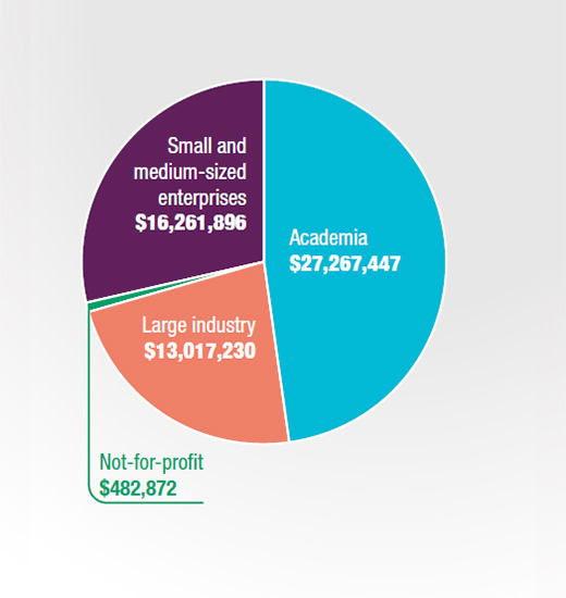 Total funding awarded by innovator type ranges from $482,872 for Not-for-profit to $27,267,447 for Academia.