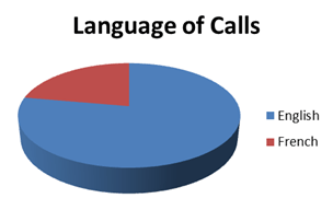 Language of Calls: Pie chart illustrating 1,252 English calls in blue and 357 French calls in red.