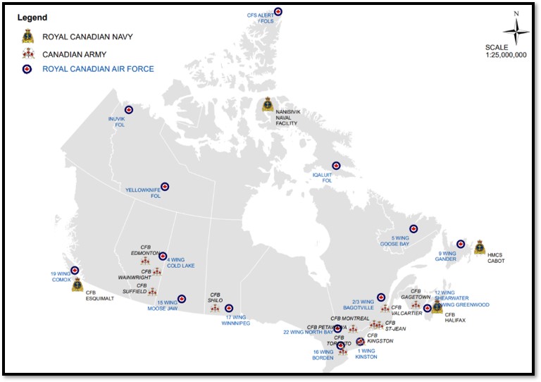- 3 RCAF bases (22 WING NORTH BAY, 16 WING BORDEN, 1 WING KINGSTON)