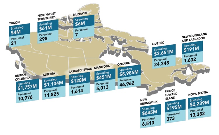 - Ontario: $8,985 million, 46,962 personnel