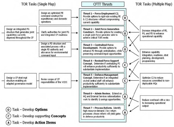 - The Chief of Transformation was responsible directly to the CDS for CF structural options and to the Deputy Minister for DND structural options;