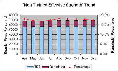 [20] The appropriate size of the Basic Training List is a function of the size of the Regular Force as a whole and predicated on anticipated attrition (and thus recruiting) rates, with the aim of securing a healthy flow of new members replacing those who leave.
