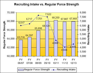 - Identifying and reallocating approximately 3,500 regular force personnel into those areas identified for future growth or investing the funds elsewhere;