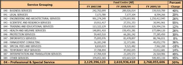 - Consultants, contractors, and professional services contracts consume about $2.7B annually and growing (with at least 5,000 people, many of whom are in Ottawa);