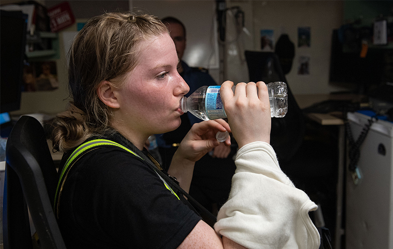 Four other women officers on board also fill key positions including that of Navigating Officer, Operations Officer, Operations Room Officer, and Above Water Warfare Officer. Winnipeg also boasts six women Non-Commissioned Officers onboard, who are formidable in their presence amongst the Chiefs and Petty Officers, as well as a host of energetic and talented women who help make up the junior ranks mess (so numerous they are, in fact, that they were moved in to a larger mess given the high numbers onboard). Each of them fill critical, mission-essential roles on Winnipeg. They are operators and naval communicators; supply, marine, medical, and imagery technicians; administrators, aircrew, cooks, and stewards.