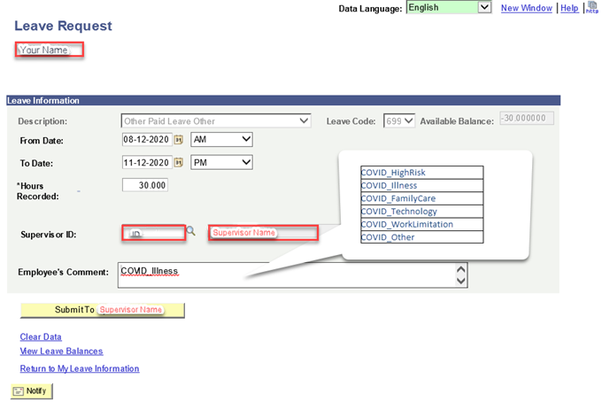You should have discussed the use of this code “699 Covid”, and the reason with your Supervisor/Manager before submitting your leave request.