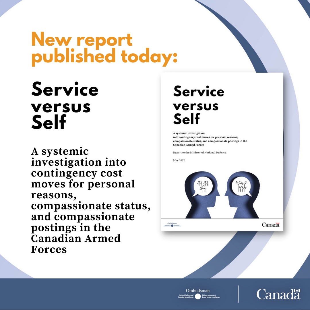 After reviewing the most common issues that military families brought to their attention, the National Defence and Canadian Armed Forces (CAF) Ombudsman identified compassionate postings—including contingency cost moves for personal reasons and compassionate status—as a topic to investigate further.