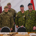 Lieutenant-Colonel Craig Higgins, second from right, officially became the Commanding Officer (CO) of the enhanced Force Presence (eFP) Battle Group (BG) Latvia from outgoing CO LCol Jesse Van Eijk in a Change of Command ceremony that was held December 13, 2022 at Camp Ādaži in Ādaži, Latvia.