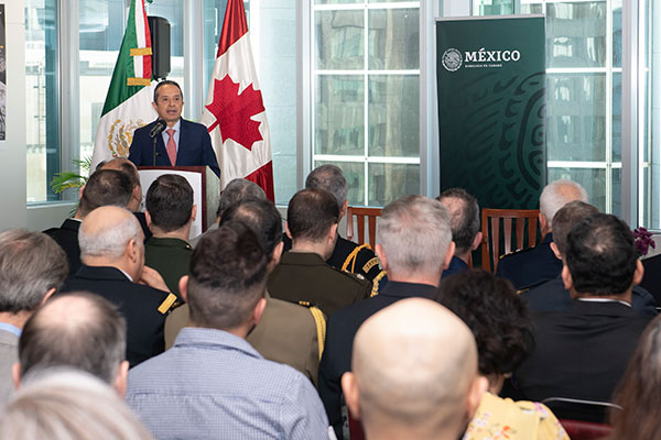 As part of the celebration for Pan American Day, the Embassy of Mexico co-hosted, with the Latin American Soldiers Committee, the presentation of the “Latin American Soldiers in Canada Remembrance Book Vol I” on April 14, 2023. Members from the Canadian Armed Forces, DND’s Directorate of History and Heritage members, Military attaches from Latin American and abroad, diplomatic members, distinguished guests, and community members were in attendance. The event offered those with Latin American roots an opportunity to connect and embrace their heritage in Canada. Attendees also had an opportunity to learn more about the role that Latin Americans have played in the defence of Canada since the First World War.